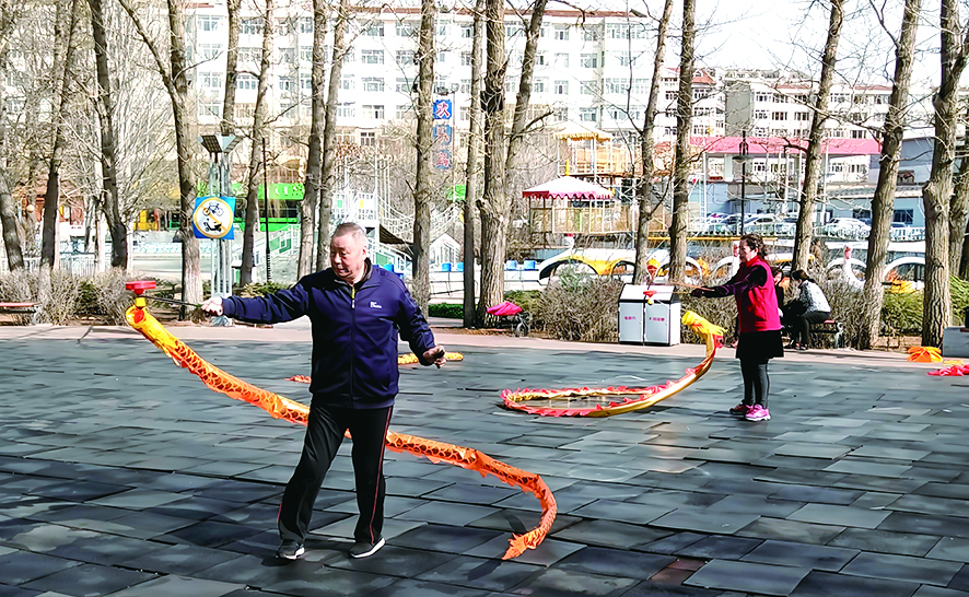 ●公园里抖空竹的老年人 本报记者 鲍娜 摄