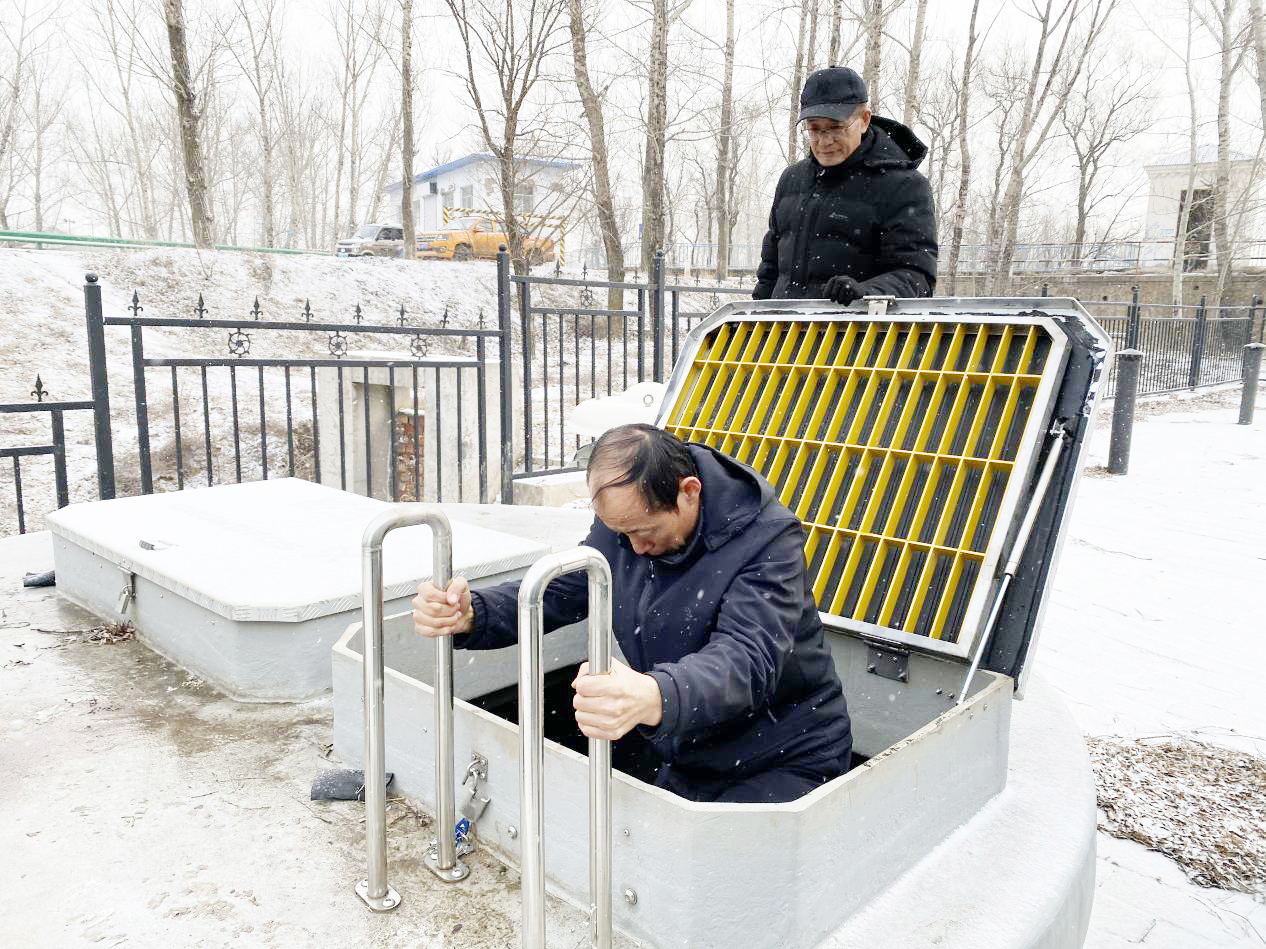 春节期间,天气寒冷,傍晚时分,村庄里传来了阵阵的鞭炮声。而在弓坝河水库的调水工作室里,县水利局工作人员依然在值守着,每隔一个小时,他们都要握着冰冷的扶手、踩着梯子,慢慢进入一体化泵站筒体中,认真地察看筒体内的管道系统、控制系统等是否正常运行。掀井盖、看示数、记数字、管网巡护……这是水利局工作人员每天的工作日常。