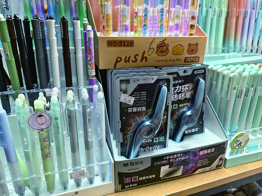 记者了解到,这些价格较高的文具大多打着“创意”“新奇”的旗号吸引学生。不少文具融入了动漫、国潮等时尚元素,还有些仿照盲盒的形式,将一个系列的多种款式封装在相同的盒子里销售。在部分文具店,记者还看到了具备玩具功能的文具,如“转转笔”“解压文具”等,这些文具堪称“收割”家长钱包的“利器”。它们的售价往往是普通文具的几倍甚至几十倍,然而实际使用价值却并不高。