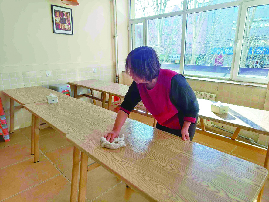 “为了让孩子们能在干净、舒适的环境里学习和生活,我们从几天前就开始准备了。”托管班工作人员白杨一边擦拭着桌子一边介绍,“这些桌椅都要仔细擦好几遍,确保没有灰尘,给孩子们一个整洁的用餐环境。”