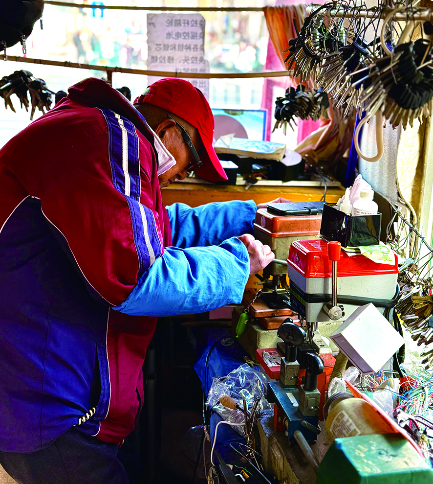 “配钥匙是个精细活,容不得半点马虎。”康世中接过顾客递来的钥匙,眼睛微微眯起,仔细观察钥匙的齿痕,随后熟练地在钥匙机上调试。机器启动,发出嗡嗡声,他稳稳握住钥匙,一点点打磨、雕琢。锉刀在钥匙上轻轻划过,发出细微摩擦声,不多时,一把崭新的钥匙便在他手中诞生。