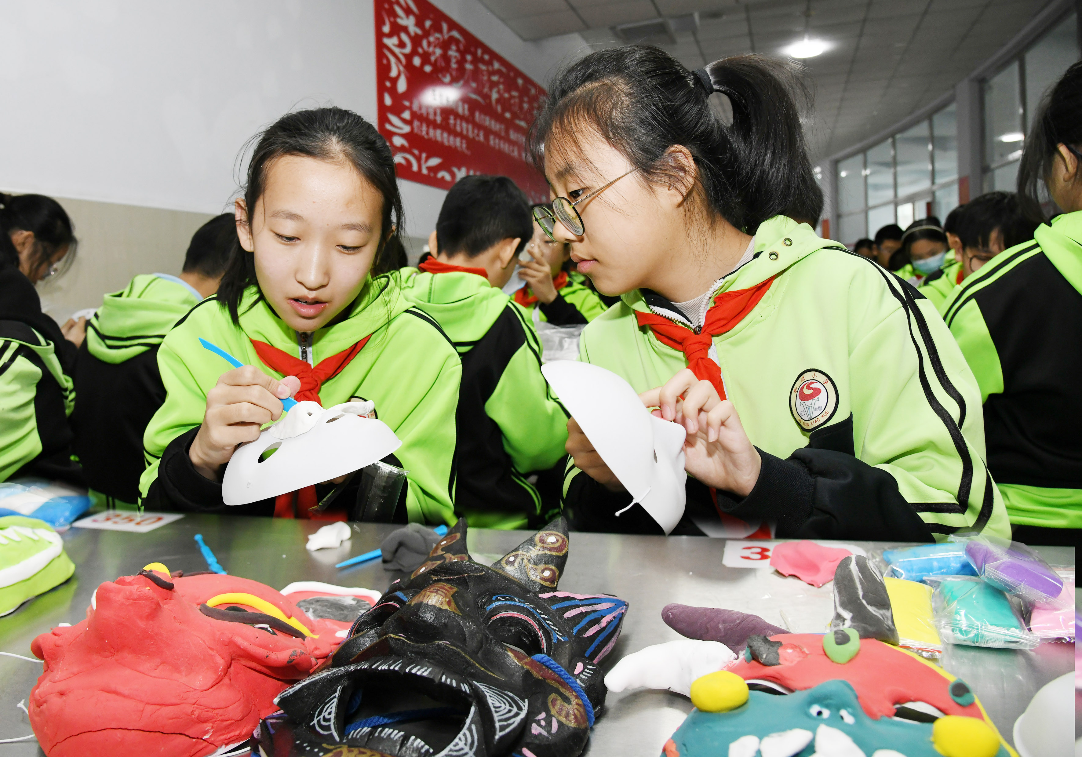 学生动手设计制作傩面具。本报记者 郭小燕 摄
