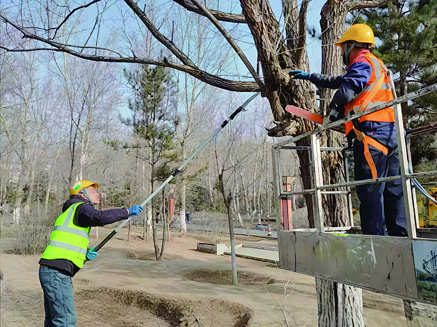 ●工作人员进行树木养护本报记者 李梦娜 摄