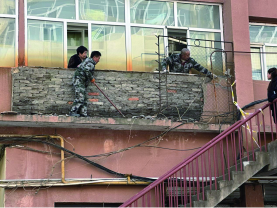 施工期间,社区工作人员联合三户四长,在现场拉起警戒线,提醒居民注意安全,引导居民绕行。工作人员还时刻关注施工动态,与施工人员紧密沟通,保障施工有序推进。施工队严格按照规范流程,争分夺秒施工。经过数小时的努力,成功修复倾斜的外墙,排除了安全隐患。