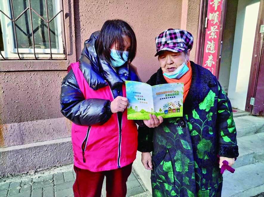 ●社区工作人员为居民讲解垃圾分类知识 徐楠 摄
