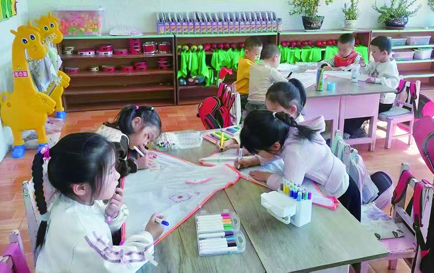 孩子们发挥想象描绘属于自己独一无二的风筝 本报记者 朱旭敏 摄