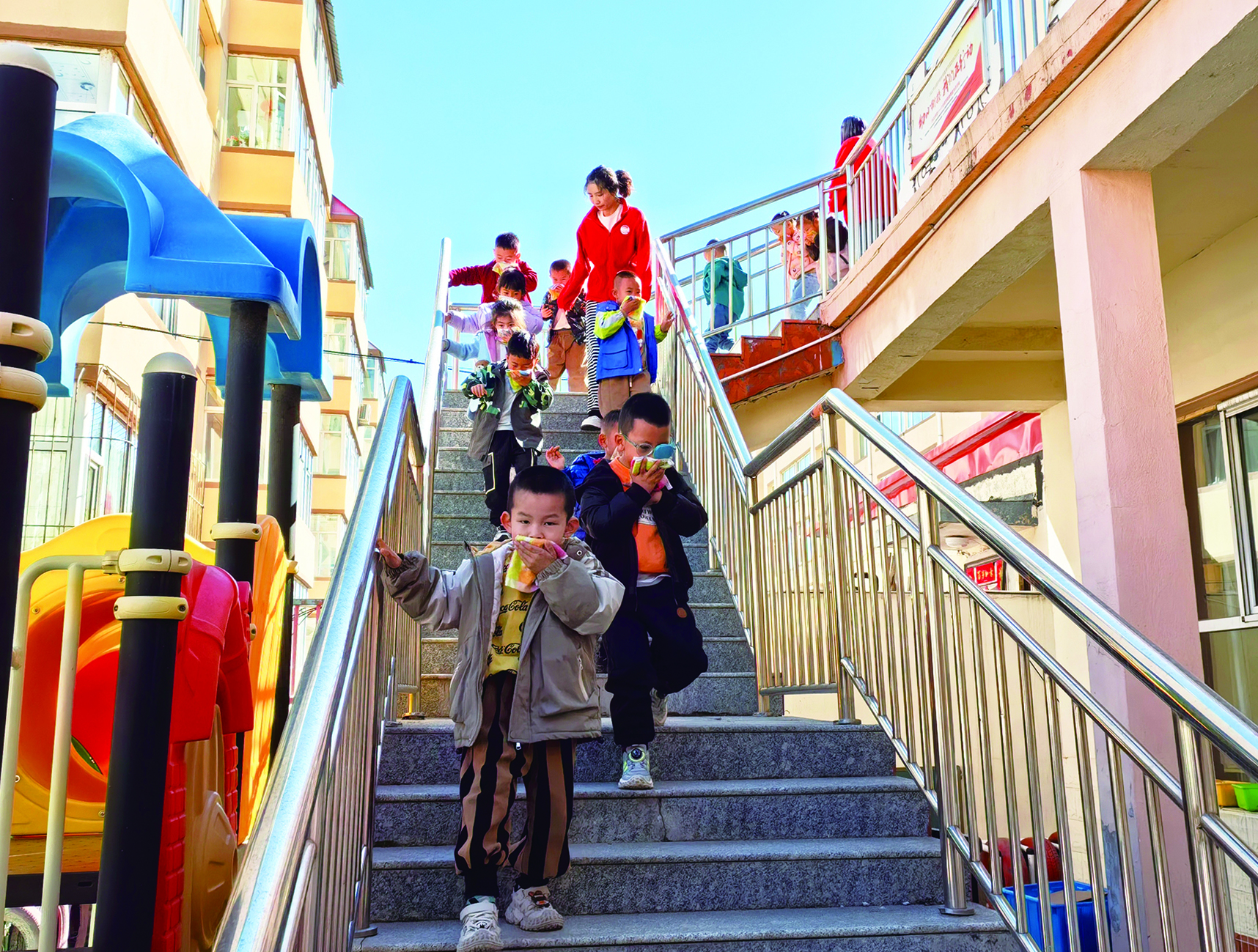 ●幼儿进行火灾应急演练本报记者 李梦娜 摄
