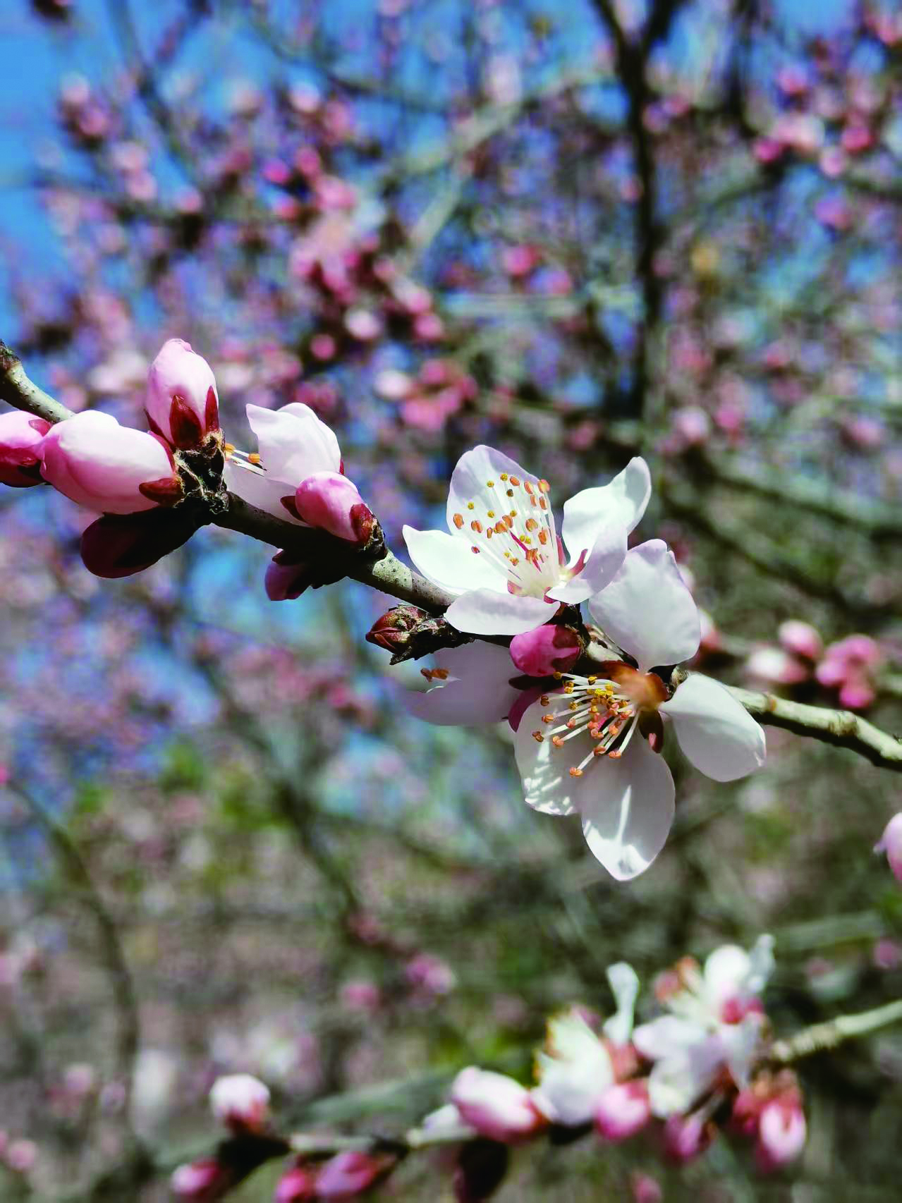 在集宁区白泉山生态公园,随处可见粉白相映的花蕾,偶有几隅,一簇簇粉红色的桃花蓓蕾初绽,春风拂过,空气中弥漫着淡淡的花香。