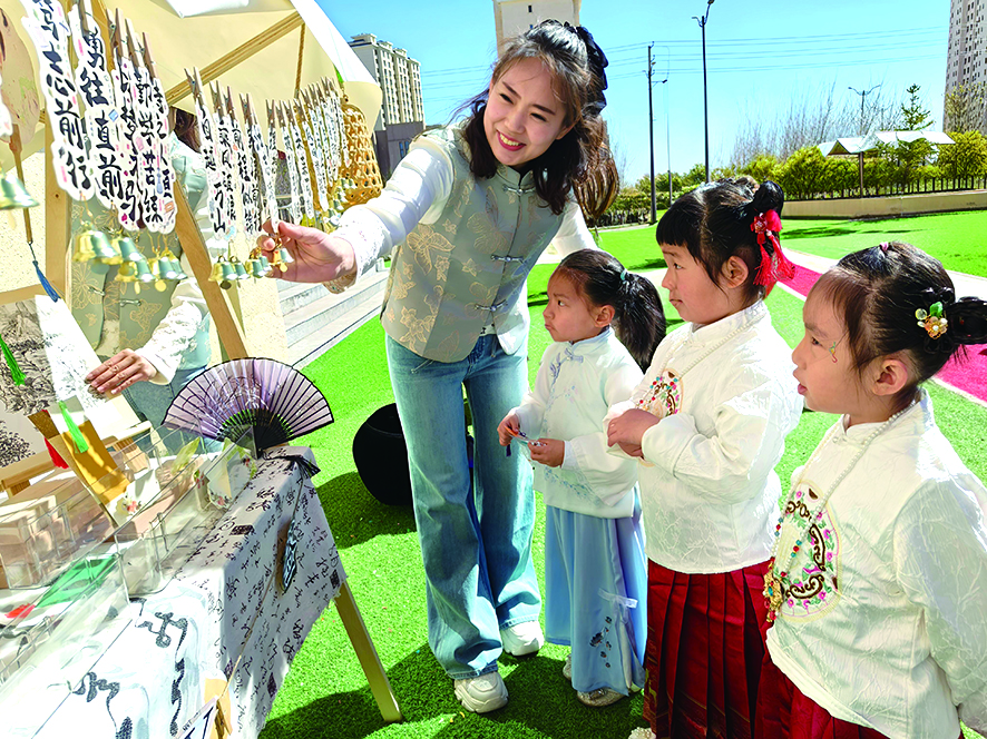 ●老师为小朋友介绍不同类型的书签 本报记者 李梦娜 摄