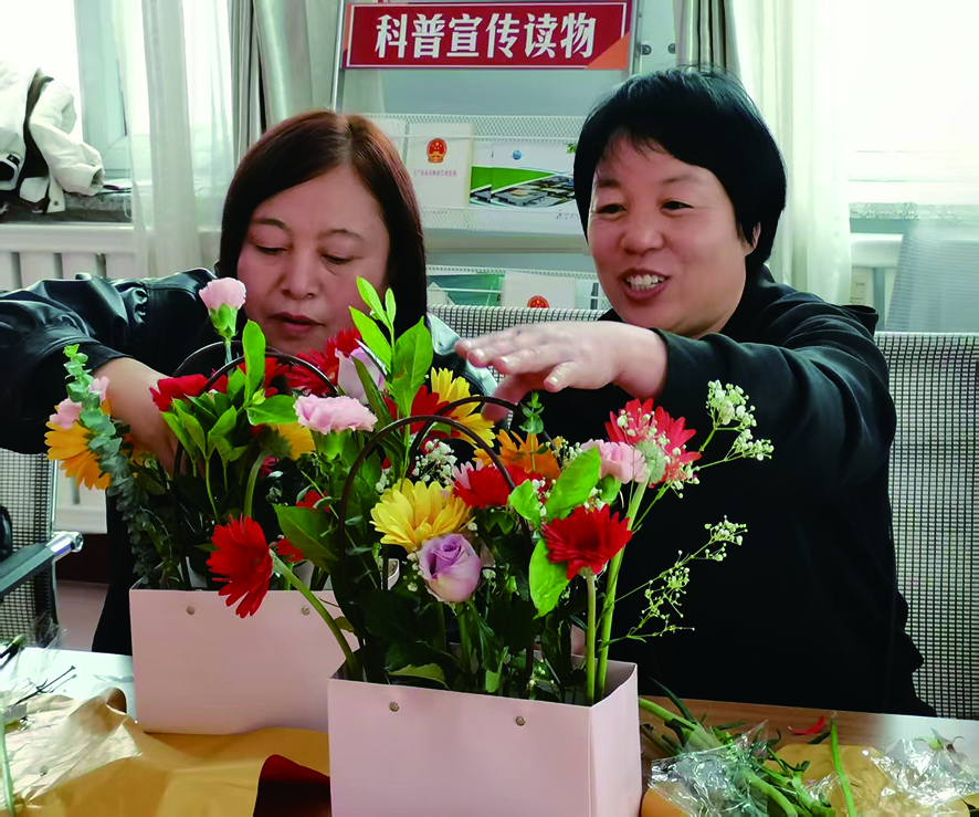 随后,在工作人员指导下,居民们将玫瑰、康乃馨等花材精心搭配,用灵巧的双手将一束束鲜花变成错落有致的花篮。活动最后,社区将部分作品赠予独居老人家庭,让这份节日的温暖在社区内持续传递。