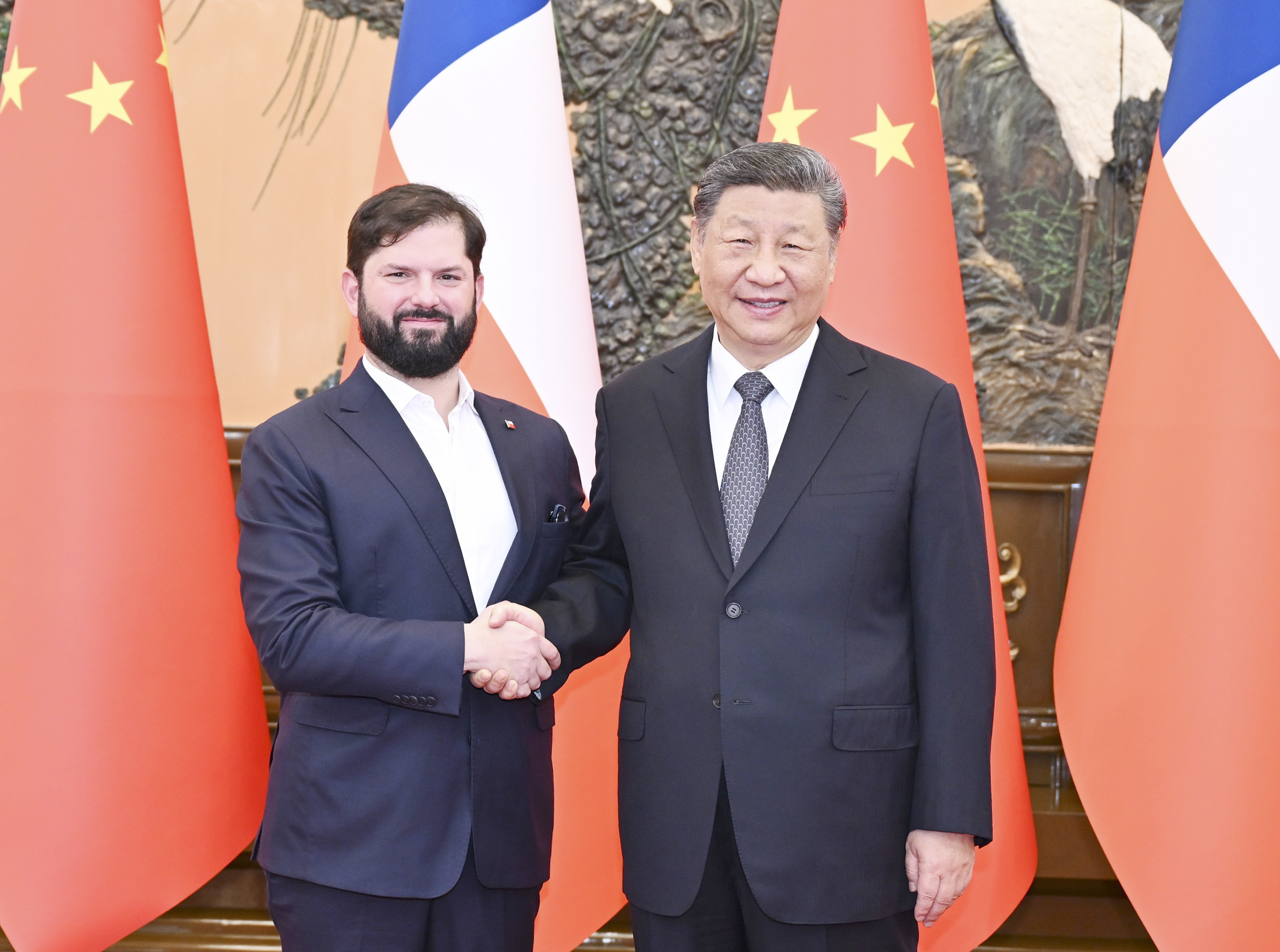 博里奇表示,智利高度重视对华关系。中国已成为智利最重要的贸易伙伴,双方合作造福了两国人民。智方将坚定奉行一个中国原则,期待与中方进一步拓展贸易、投资、人工智能等领域合作,高质量共建“一带一路”,密切人文交流,推动智中关系取得更多实实在在的成果。各国应坚持自由贸易和互利共赢,贸易不应只服务于一国私利,发动贸易战没有出路。智方愿同中方一道,坚定捍卫多边主义和联合国权威,坚持通过对话解决分歧,共同维护国际公平正义。
