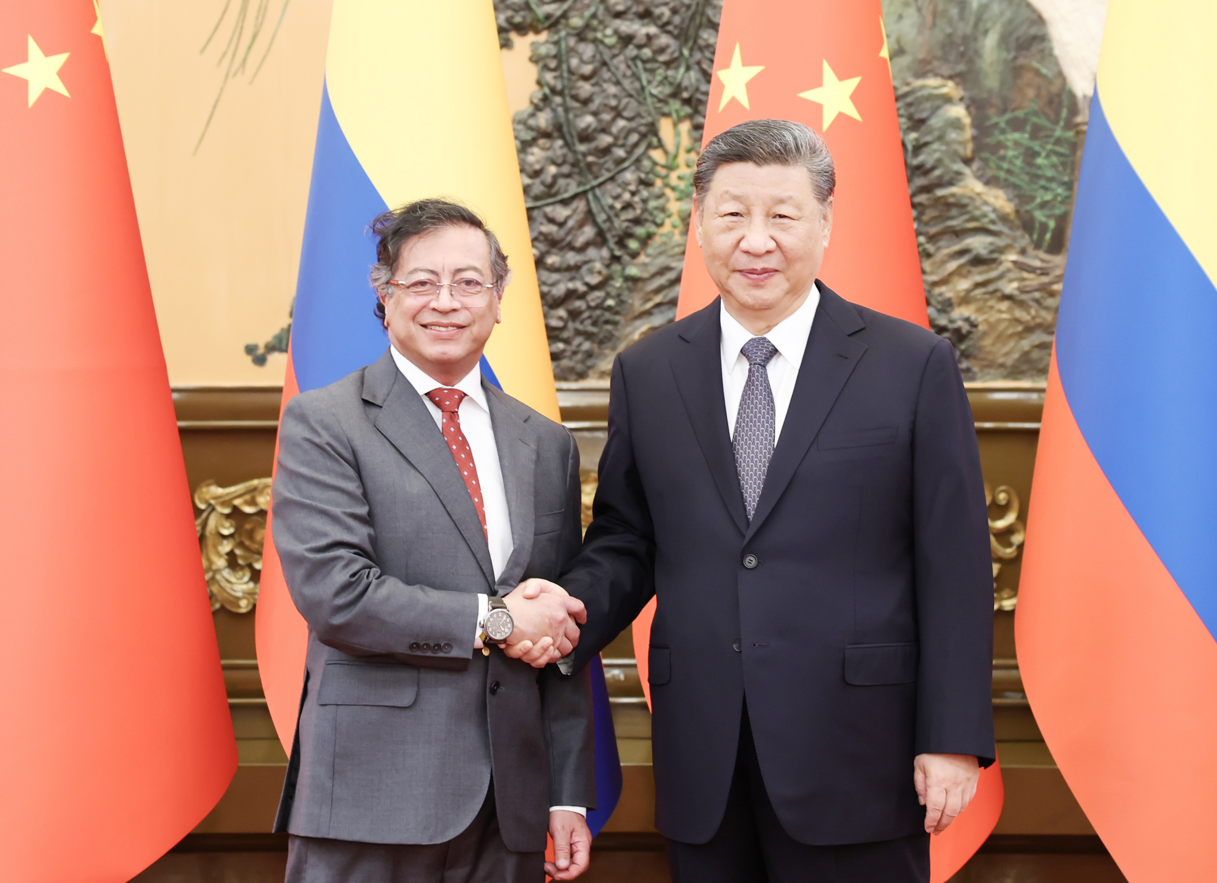 5月14日上午,国家主席习近平在北京人民大会堂会见来华出席中拉论坛第四届部长级会议的哥伦比亚总统佩特罗。新华社记者 黄敬文 摄