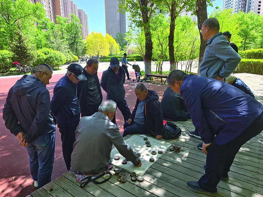 “将军!”公园长椅上,几位老人对弈正酣,围观者里三层外三层。棋盘上棋子交错,气氛安静而紧张。刚退休的赵德海是这里的常客,“下棋不仅锻炼脑力,还能结交志同道合的朋友,我们在这儿还交流养生经验,日子过得有滋有味。”赵德海说。