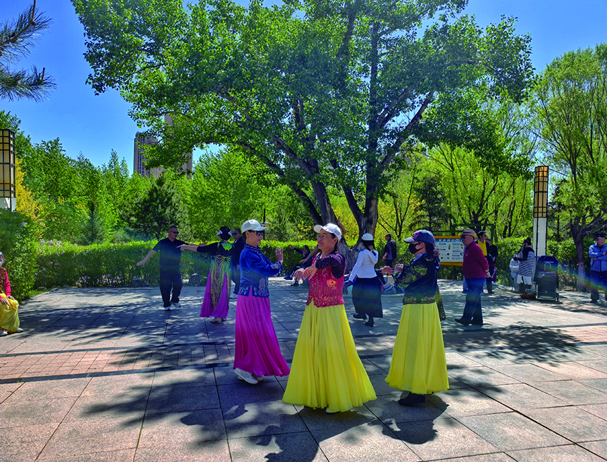 ●广场上,老人身穿彩裙随歌起舞 刘佳鑫 摄