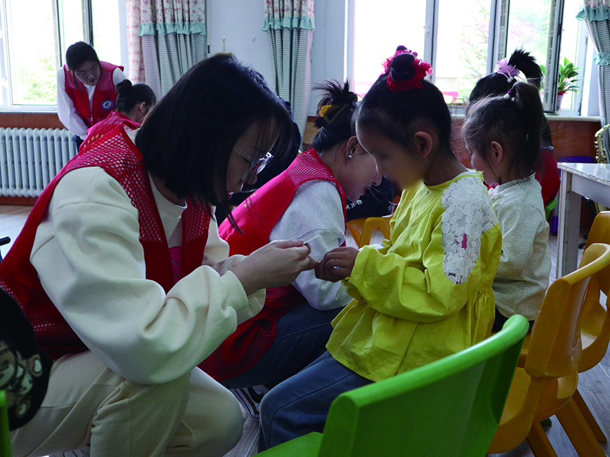 ●老师与孩子一起做手工 本报记者 马佳敏 摄