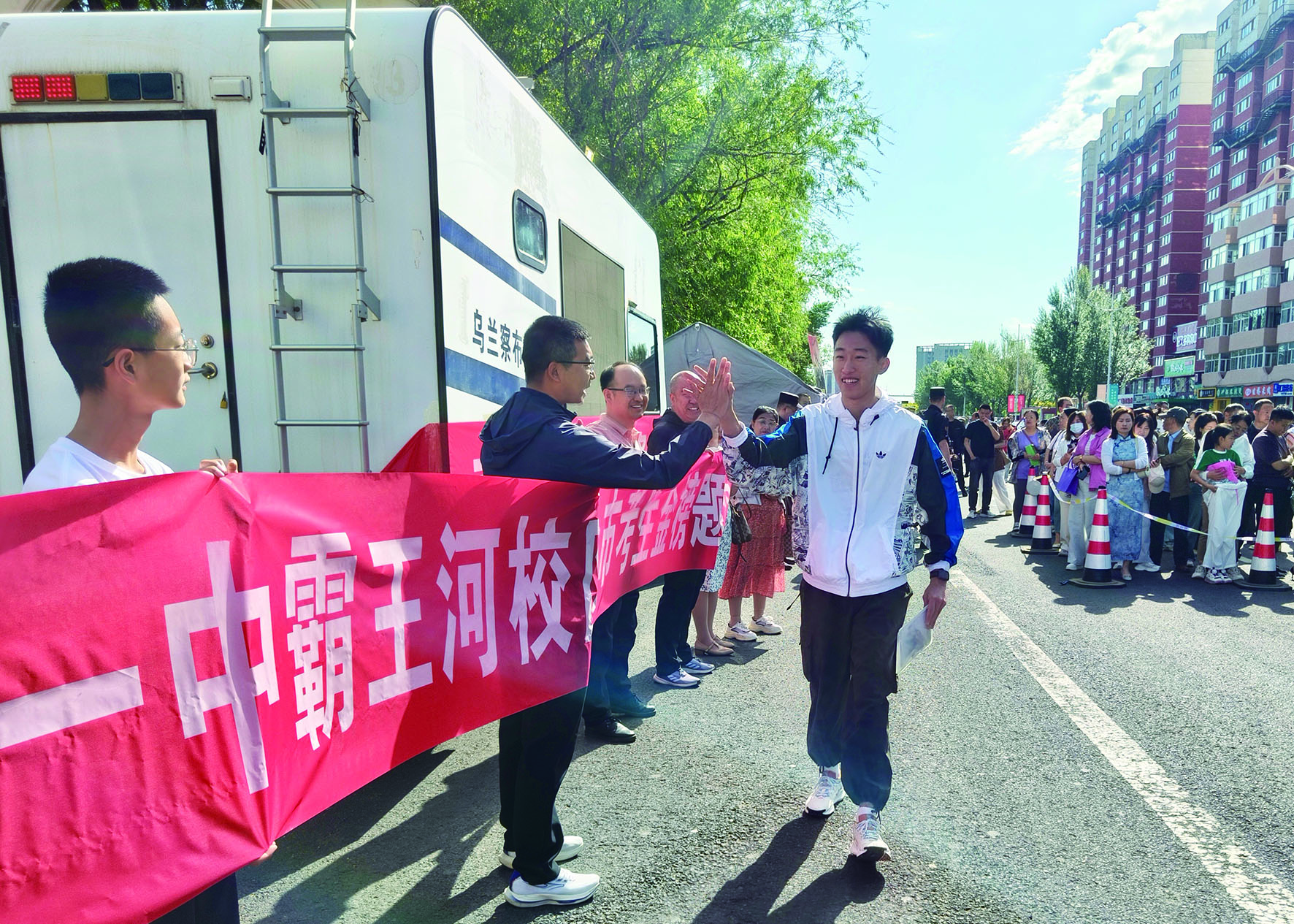 考点校门口,教师们化身“最强后援团”。北京八中乌兰察布分校的老师逐个与学生击掌:“按平时节奏来,没问题!”北京师范大学集宁附属中学的教师们与学生拥抱,孙烨老师反复叮嘱:“平常心最重要,你答的都是会的!”集宁六中考点外,老师们举起“高考必胜”横幅,用轻松的语气缓解学生紧张:“考完请大家吃雪糕,先专心答题!”
