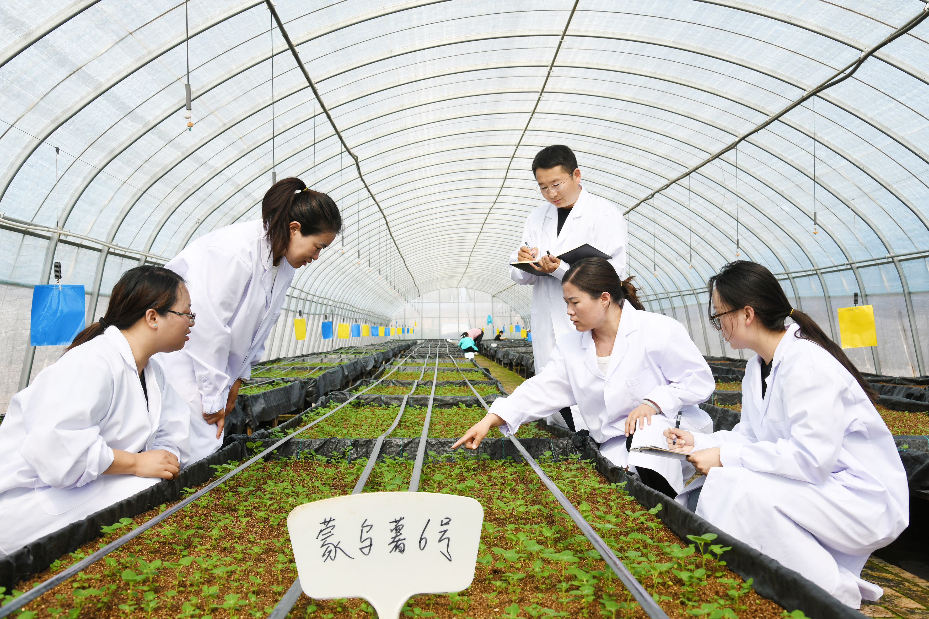6月12日,市农林科学研究所科研团队正在试验棚观察种苗长势情况。