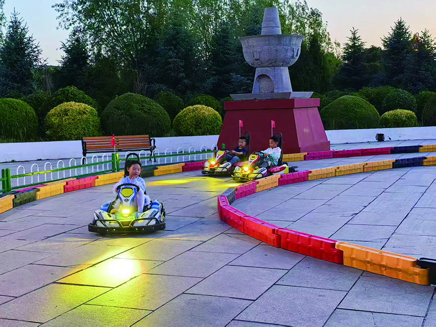 儿童游乐区的欢笑声打破夜晚的宁静。一群天真烂漫的少年儿童在家长的陪护下,拿着发光玩具互相追逐。他们穿梭奔跑的身影,在夜色中勾勒出灵动的轨迹;时而爆发的清脆笑声,在广场上构成欢乐乐章。“孩子在家总盯着屏幕,现在天天嚷着来广场,不仅锻炼了身体,还认识了不少新朋友。”说话间,年轻妈妈王雨燕的目光始终追随在奔跑的孩子身上。