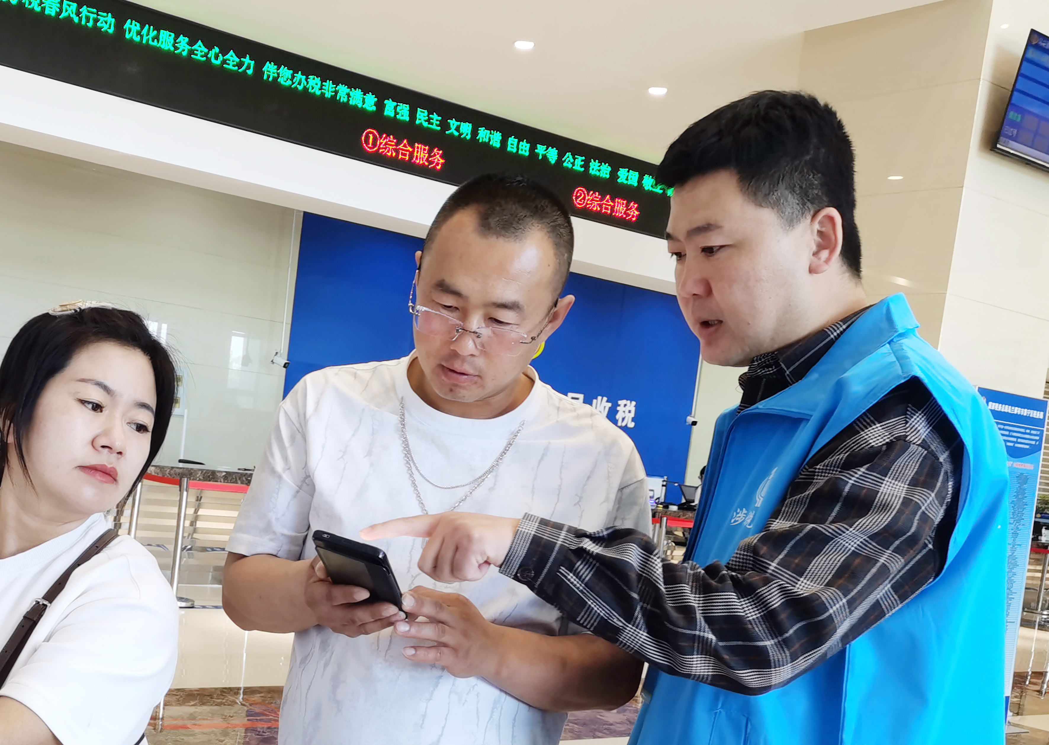 走进集宁区税务局办税服务大厅,身着“税务蓝”的纳税志愿服务小队忙碌地往返于咨询台与自助服务区。只见一位税务人员正弯腰耐心指导办事群众使用智能设备,随着指尖在触控屏上的流畅点击,纳税人的神情也逐渐放松,温馨的服务画面已成为这里的日常风景。
