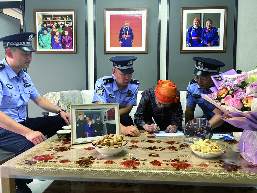 本报讯(记者 鲍娜 通讯员 吕维艺)在“七一”建党节前夕,乌兰察布边境管理支队脑木更边境派出所的党员民警来到“人民楷模”“草原母亲”都贵玛家中,聆听了一堂意义深刻的党课。
