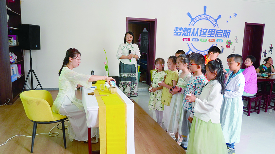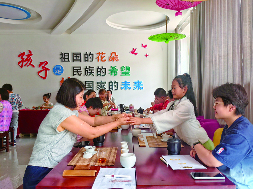 ●孩子们给家长敬茶刘佳鑫 摄