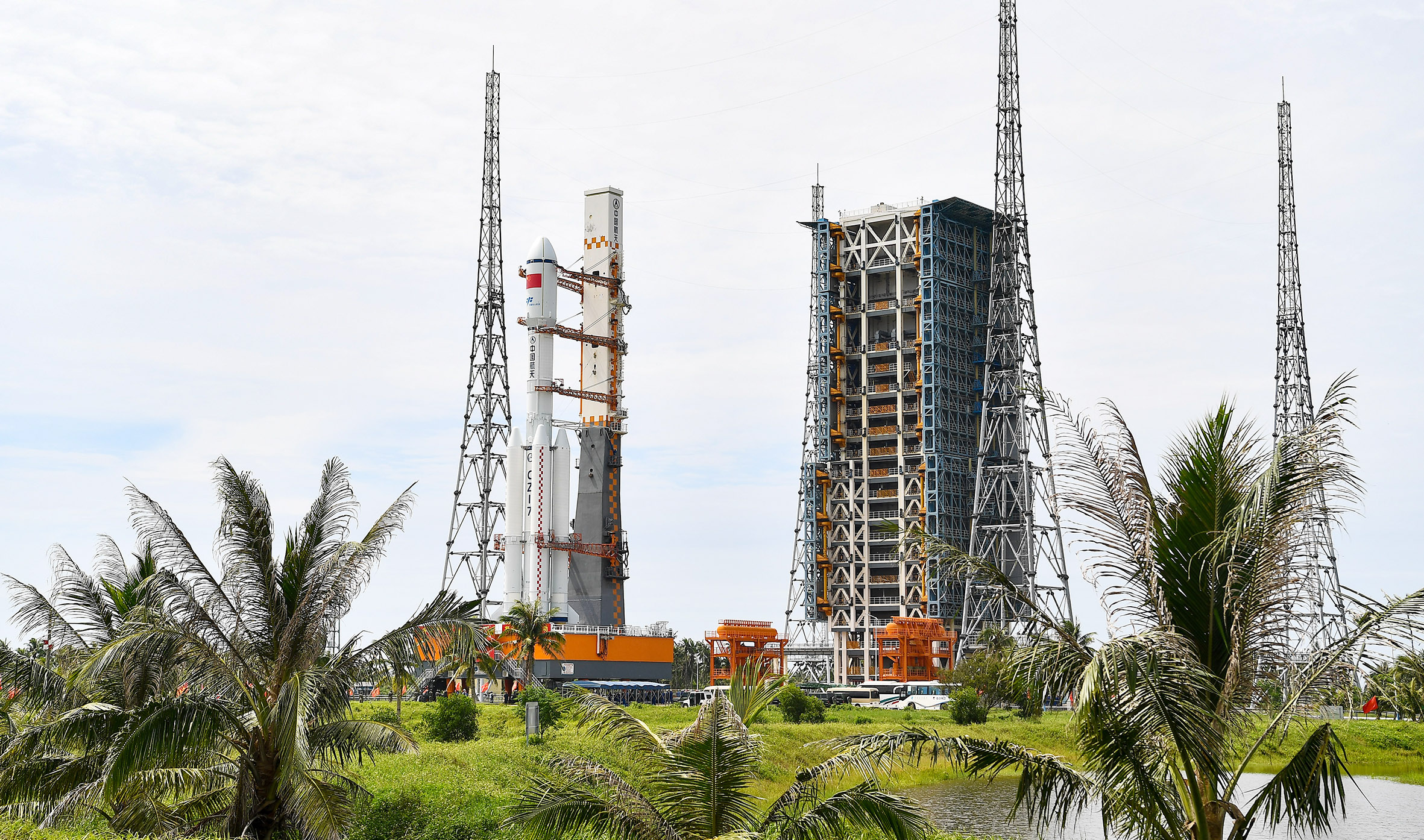 7月12日,天舟九号货运飞船与长征七号遥十运载火箭组合体垂直转运中。