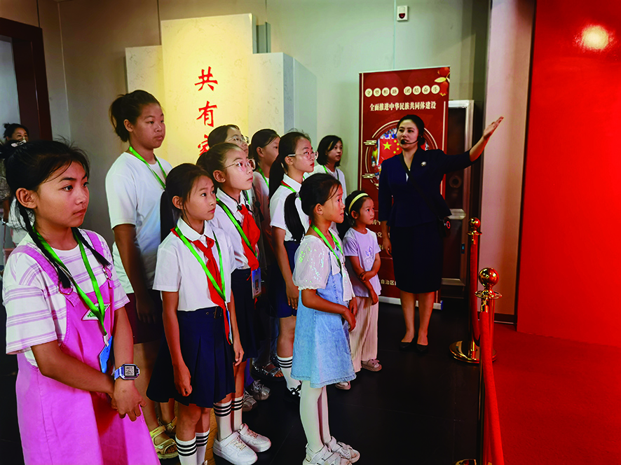 ?小小讲解员跟随工作人员参观学习 本报记者 鲍娜 摄