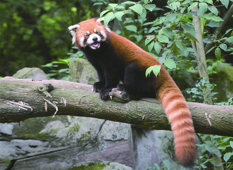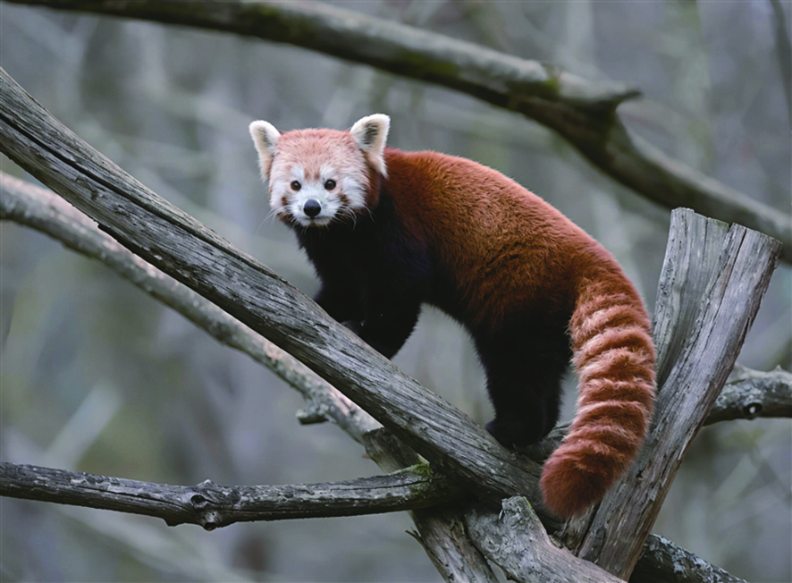 中华小熊猫身披深红褐色“外衣”,蓬松的长尾巴上,装饰着红褐色与黑褐色或黄白色相间的环纹,行动敏捷,性格温顺。它不仅入选“世界最可爱物种”榜单,还是我国国家二级重点保护野生动物。