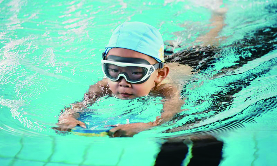 ●小朋友享受游泳的快乐 本报记者 鲍娜 摄