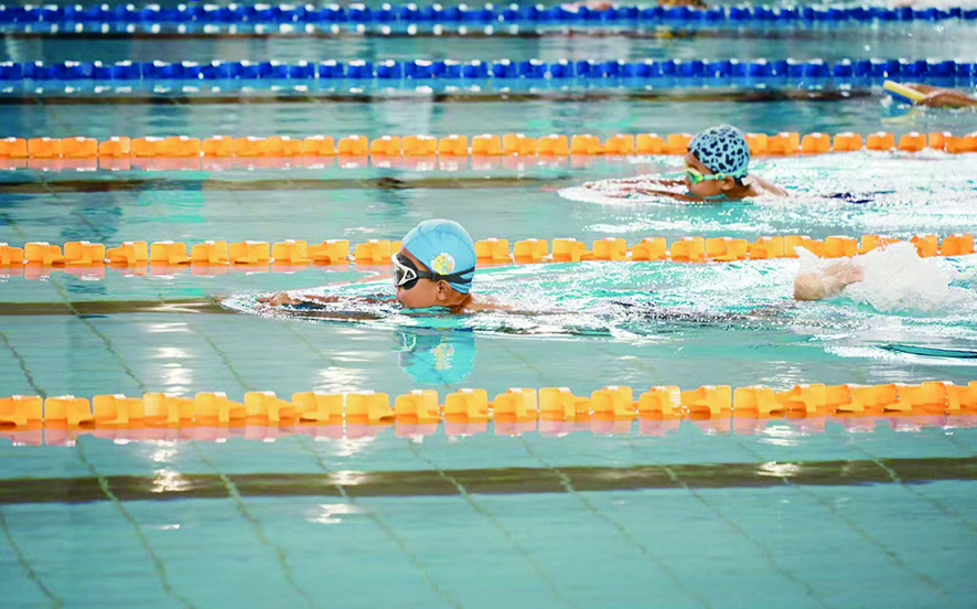 ●小朋友在比赛游泳 本报记者 鲍娜 摄