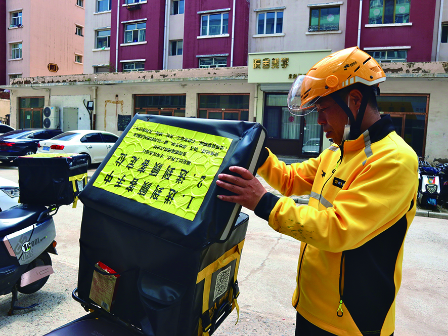 ●张志勇正在送外卖 本报记者 马佳敏 摄