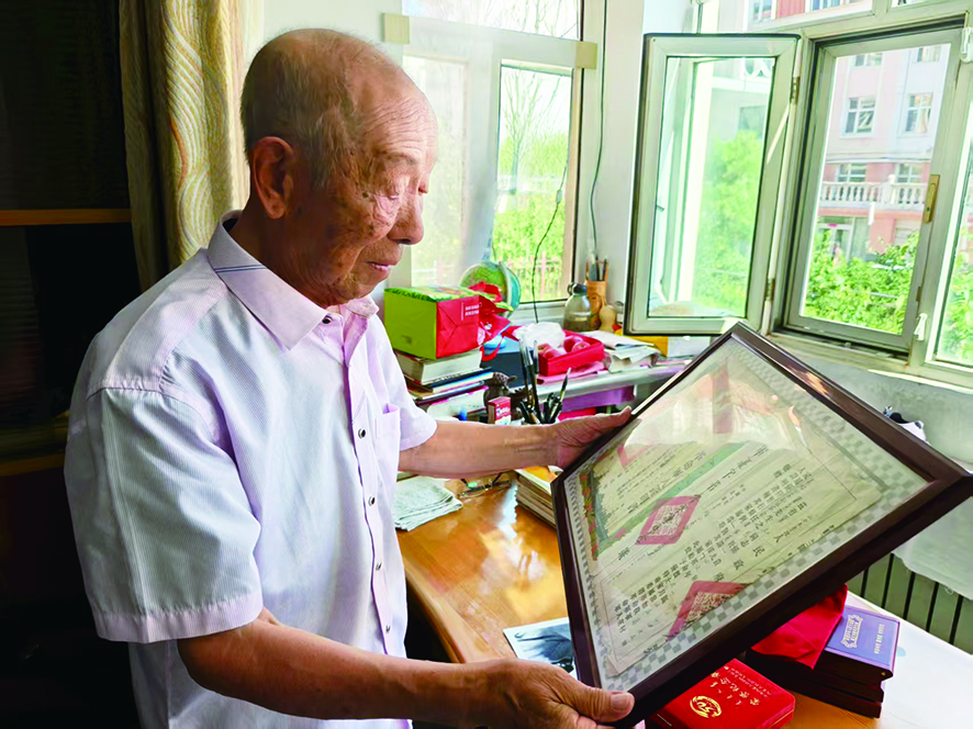 ●巩平展示革命军人证明书 本报记者 鲍娜 摄