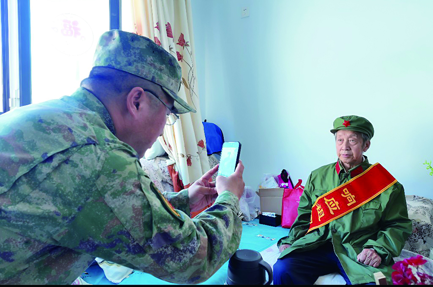 聊到兴头上,工作人员提议:“大爷,我们给您拍一张穿军装的照片吧,回头装裱好给您送过来。”老人连忙让家人取出压在箱底的旧军装。虽然领口有些褪色,袖口磨出了细边,但帽子上的徽章依旧鲜亮。工作人员细心地帮老人系好风纪扣、整理好衣角,田根华下意识地挺直腰板,眼神里重现了当年的英气。“看这里,大爷笑一笑。”随着快门声响起,这一瞬间被定格成珍贵的影像。