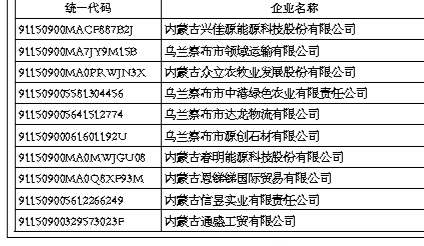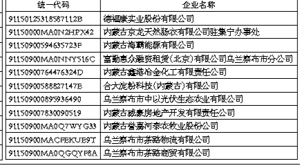 乌兰察布市连续2年(2023年-2024年)未年报企业名单