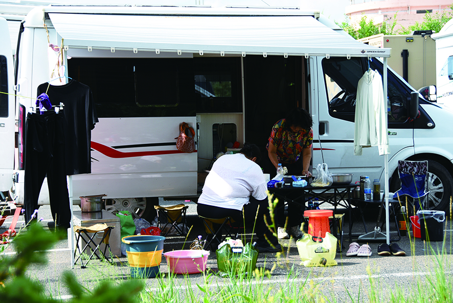 ●游客在房车营地做饭 本报记者 鲍娜 摄