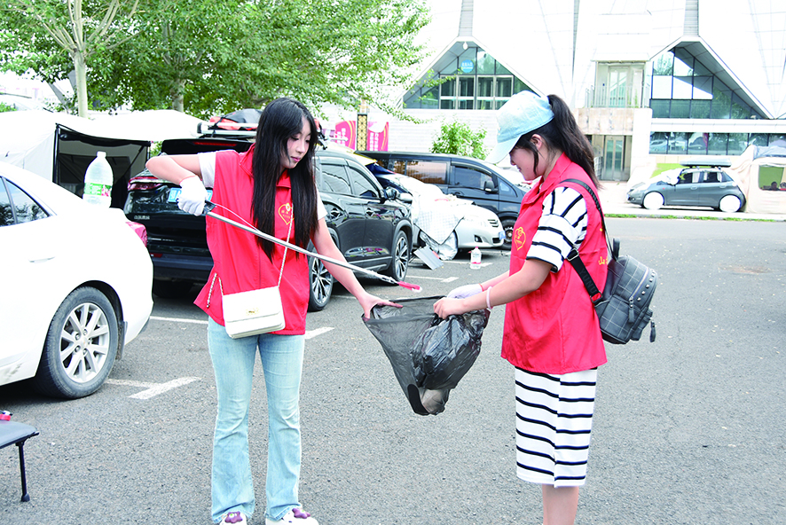●志愿者在房车营地捡拾垃圾 本报记者 鲍娜 摄