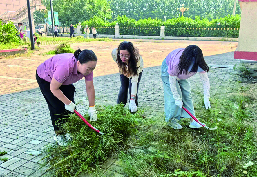 ●党员志愿者合力清除杂草 本报记者 李梦娜 摄