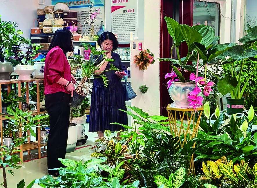 市场另一头,赵桂兰正与老板讨价还价,最终抱着两盆含苞待放的一帆风顺离开。她的阳台已摆了十几盆花草,却仍忍不住每次来市场都买新花。“每天浇水、擦叶,心里特别踏实。”在她眼里,花像朋友,更像孩子,为生活带来暖意。