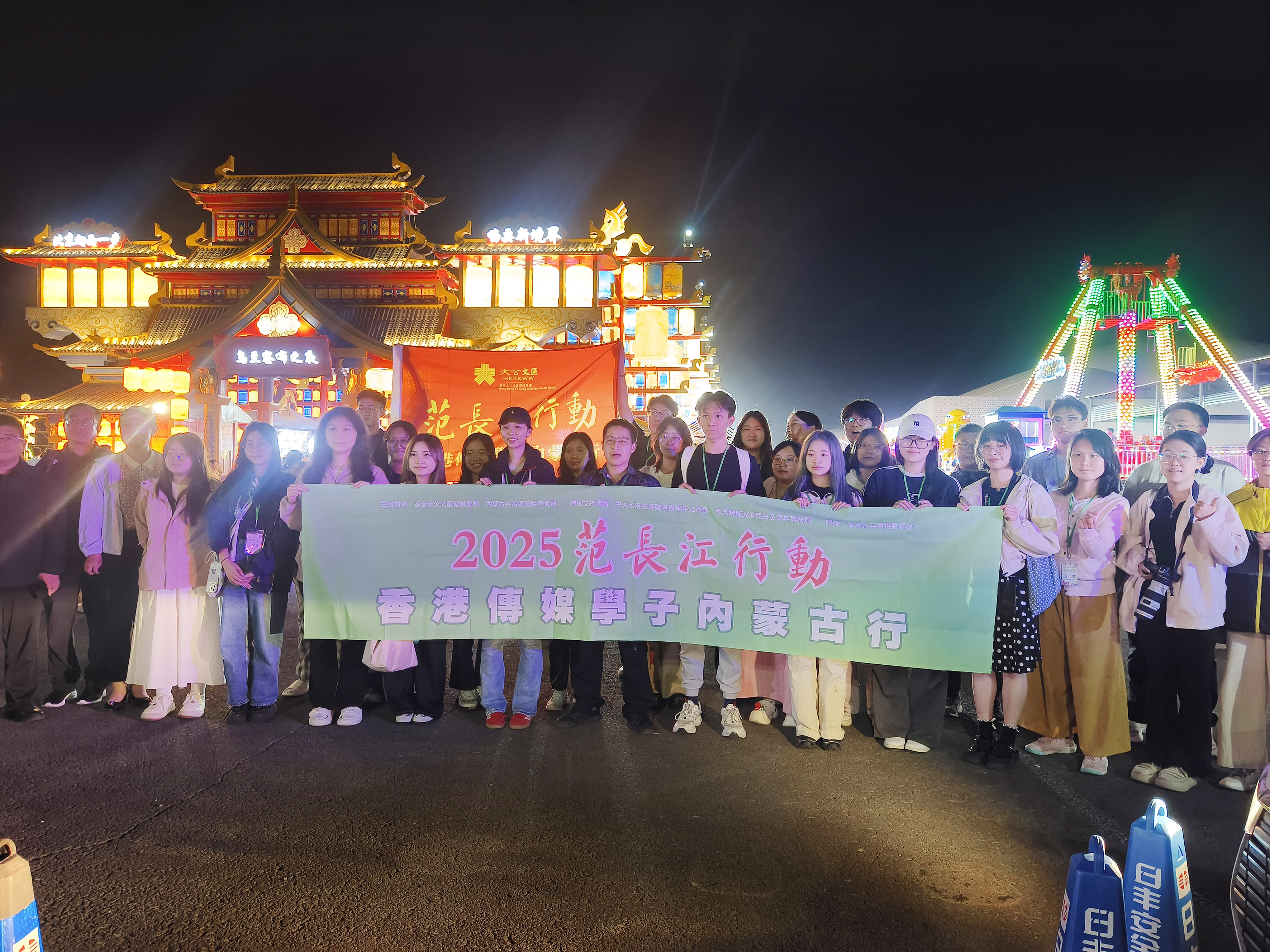 当大巴车缓缓驶入乌兰察布市区,雨后潮湿的晚风裹挟着烤羊肉的焦香扑面而来。远处霓虹灯勾勒的“乌兰察布之夜”招牌与绚烂的晚霞交相辉映,空气中弥漫着现代城市与草原相融的特有气息。8月12日,以“紫荆绽草原,青春共成长”为主题的2025“范长江行动”香港传媒学子内蒙古行来到乌兰察布,这座将“中国薯都”与“草原云谷”写在名片上的城市,用一场国潮盛宴为远道而来的香港学子开启了为期五天的草原之旅。