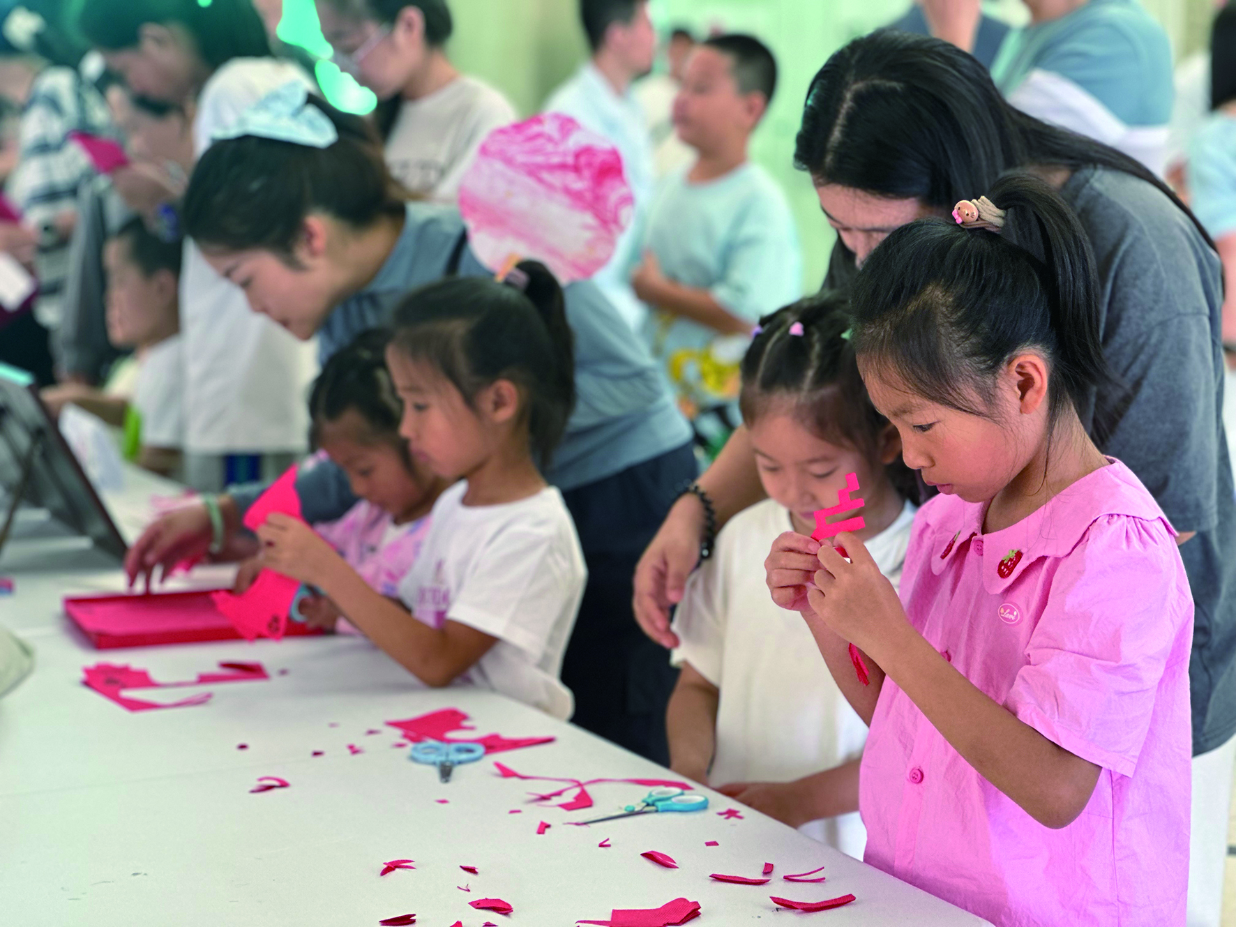 ●孩子们参与剪纸 本报记者 朱旭敏 摄