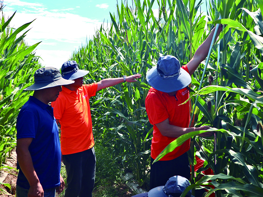 ●农户查看玉米长势并互相交流经验 本报记者 马佳敏 摄