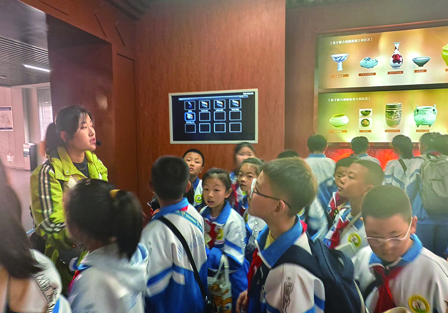 ●同学在听讲解员讲集宁战役 本报记者 刘佳鑫 摄