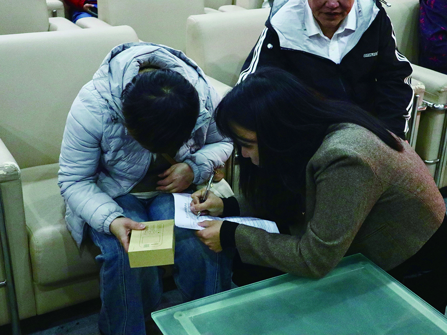 工作人员发放智能听书机