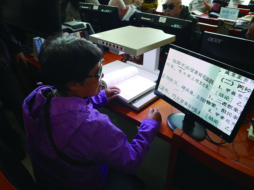 视障读者借助电子助视器设备阅读本报记者 马佳敏 摄