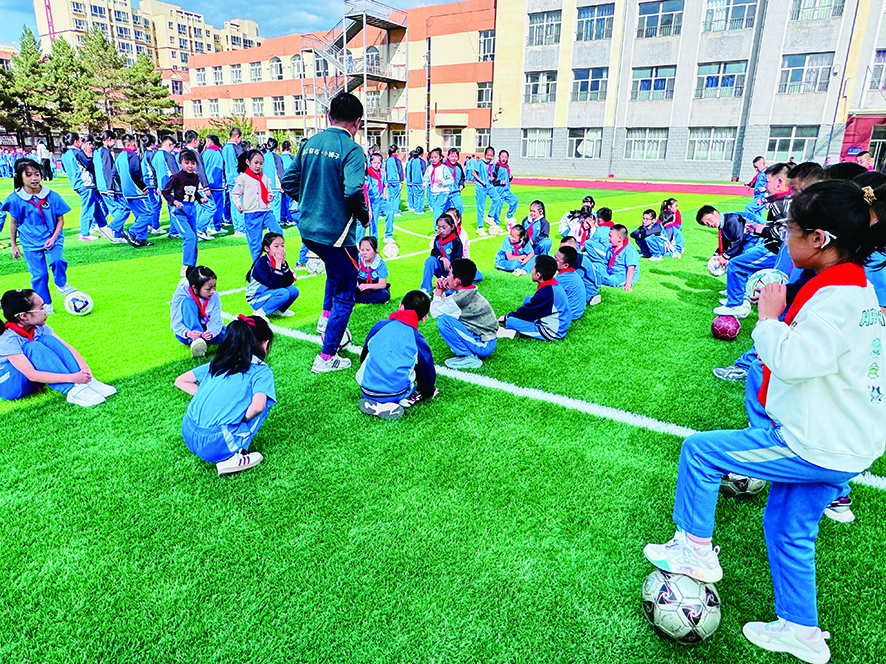 如今,每到足球课时间,实验小学的操场就变成充满活力的“绿茵天地”。孩子们奔跑的身影、灿烂的笑容,不仅展现了少年们对体育的真挚热爱,更以最纯真的方式,为蒙超联赛注入了来自校园的青春力量。