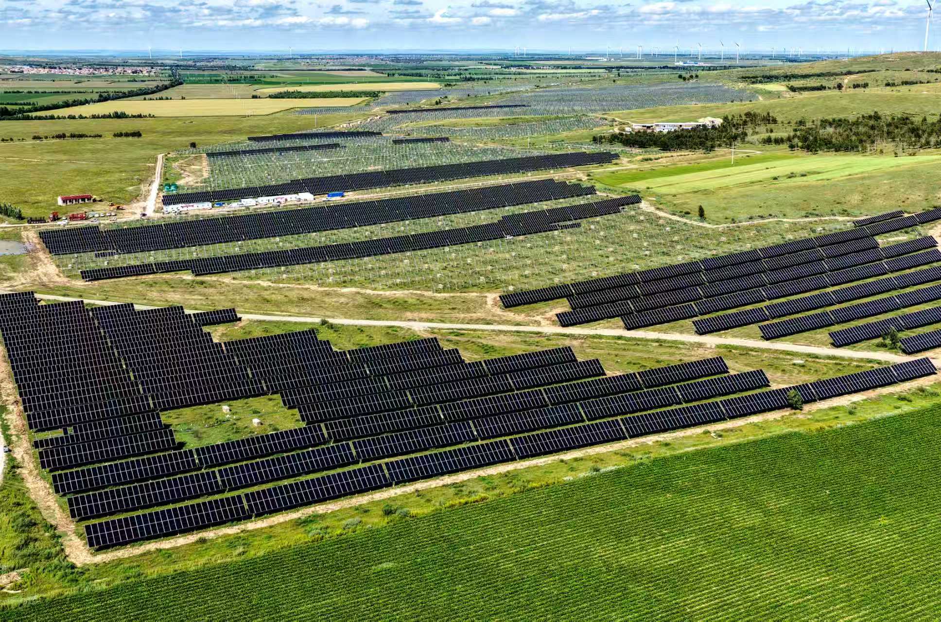 风电机组在草原上划出遒劲有力的弧线,连片光伏板如湛蓝铠甲铺满沃野,缕缕阳光转化为源源不断的清洁电能……