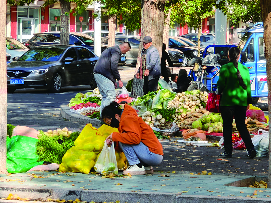 在摊位前挑选芋头的市民刘燕,手里的购物袋已经装得半满,母亲身旁的电动车上载着大葱和土豆。“我们选了耐储存的土豆、芋头,还买了20斤芥菜和5斤大蒜,打算跟着网上教程学腌芥菜丝、泡糖蒜。”在刘燕看来,囤菜不仅是为了实用,更是一种生活仪式感。