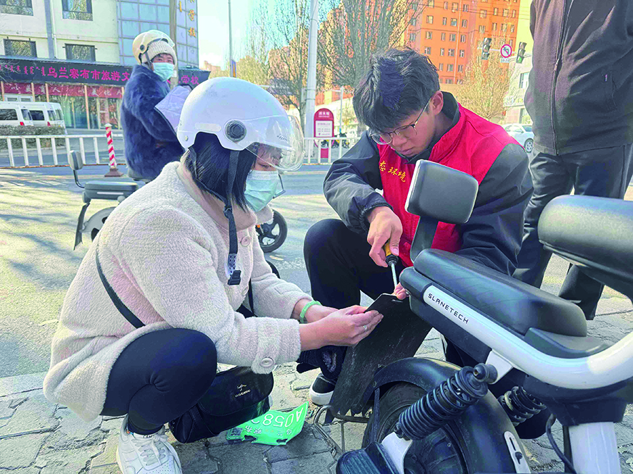 本报讯(记者 马佳敏)11月1日,乌兰察布市生态环境志愿者协会联合集宁区交管大队开展了“文明出行·绿色护航”活动,针对电动车上牌不规范、共享单车乱停放现象,志愿者以“面对面宣讲+实操性服务”为抓手,用志愿力量为市民打造安全有序的绿色出行环境。