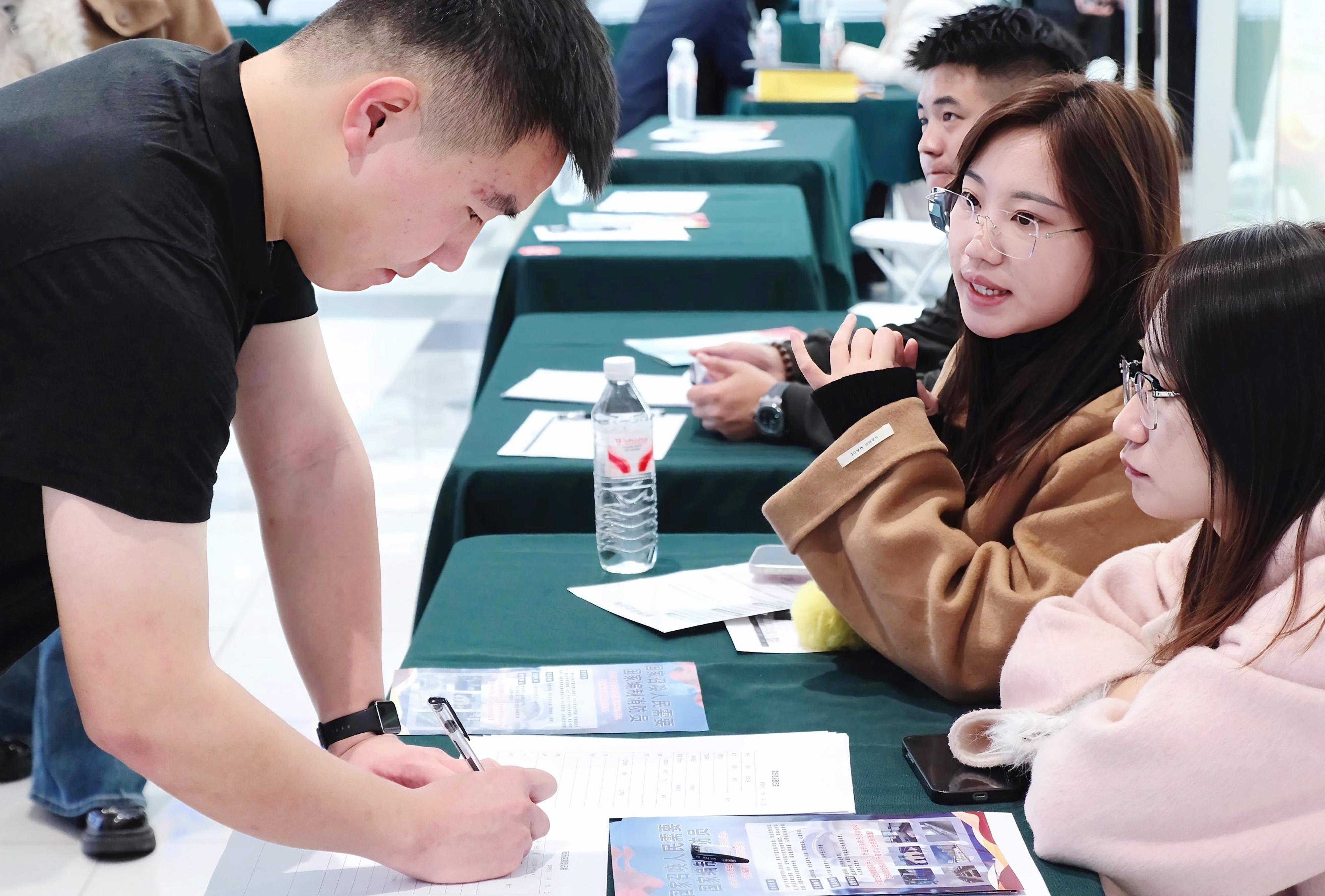 求职者认真填写信息。 招聘会现场人头攒动。 近日,由乌兰察布市退役军人事务局主办,乌兰察布市人力资源和就业服务中心、集宁区退役军人事务局协办的“荣耀新程 就业护航”——2025年乌兰察布市退役军人秋季专场招聘会在集宁区万达广场举办。 本次招聘会采取“网络+现场”双线融合模式,岗位类型丰富多元,涵盖技术、管理等多种类别,为全市有就业意向的退役军人、大学生退役士兵、随军家属提供多元选择。 李翔 摄