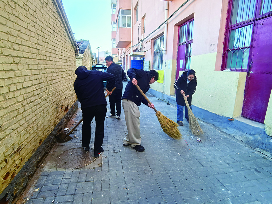 工作人员为包联小区打扫卫生 本报记者 徐楠 摄